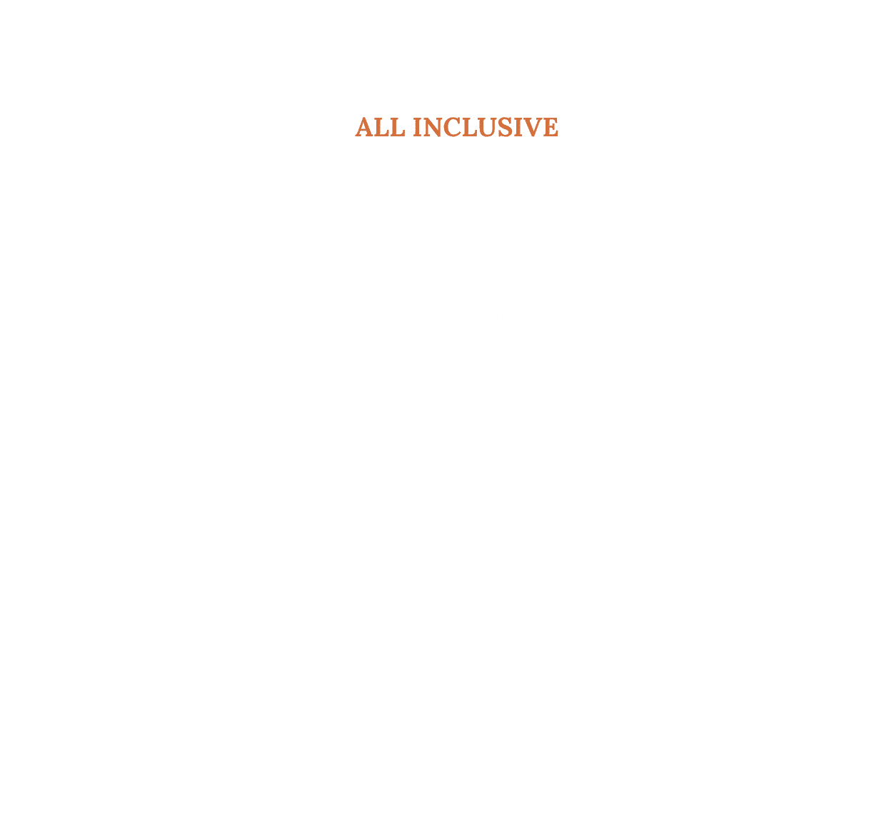 Halvpension er til den lille sult: Her får du 4 retter + snacks & focaccia. Med All Inclusive får du alle sæsonens 7 retter + snacks & focaccia. Den lille menu på 4 retter vælges af køkkenet på dagen, og vil altid være et mix af grønt og fisk.